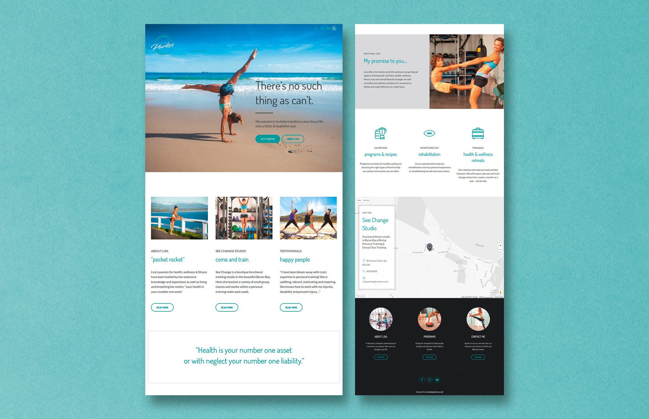 Website and design work for Byron Bay based personal trainer Lisa Parkes. Lovely simple website with web store. Lisa is also the owner of See Change fitness which I also helped develop, with various marketing materials from business cards to signage.